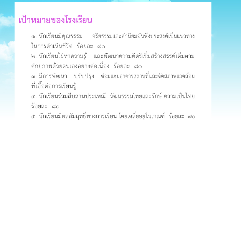 หน้าแรก เกี่ยวกับโรงเรียน หลักสูตรการเรียนการสอน ติดต่อ